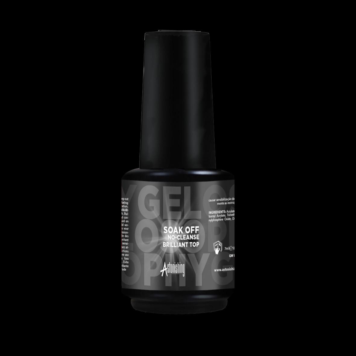 !Top Coat Brillante Sin Limpieza de Astonishing proporciona un brillo espectacular en todas las aplicaciones! Es un top coat flexible y removible, apto para los sistemas acrílicos y de gel de Astonishing y Gelosophy, con una duración de 3 a 4 semanas.