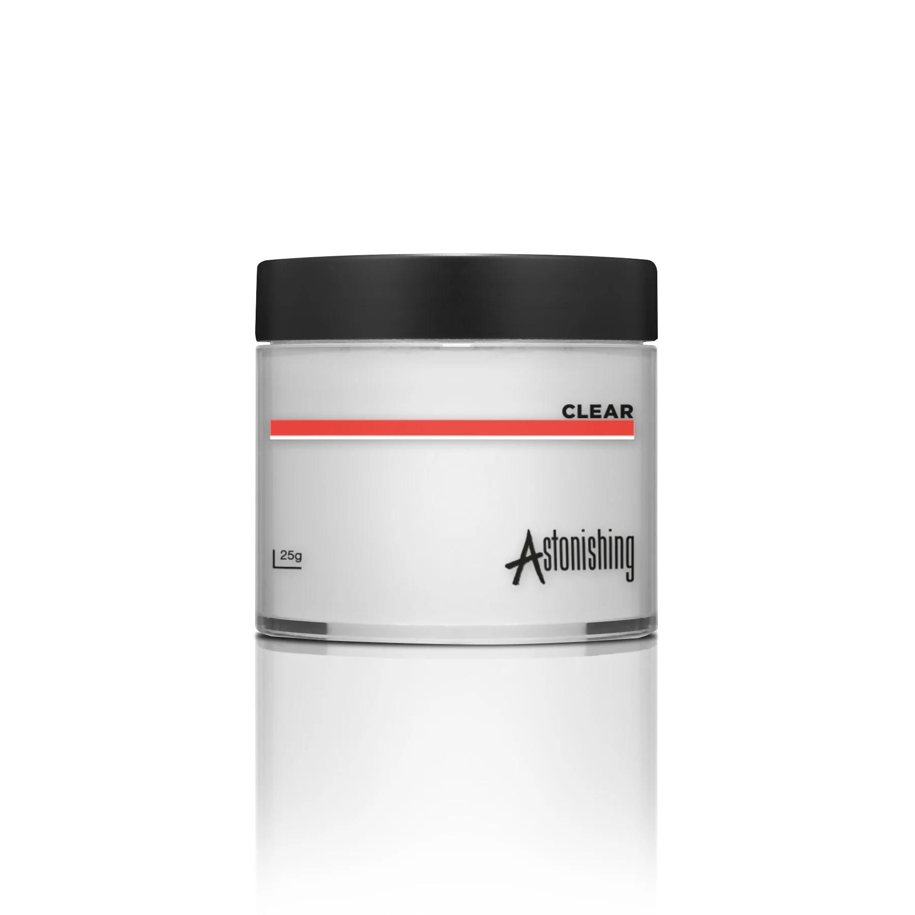 Estos asombrosos polvos acrílicos son polvos de fórmula especial con esculpido controlado. Al usarse en combinación con el monómero Astonishing, catalizan la reticulación y la polimerización. Proporcionan una estabilidad de color excepcional, un equilibrio perfecto entre rigidez y resistencia, manteniendo la extensión en su forma correcta. La superficie puede lograr un brillo intenso sin opacarse ni rayarse. La combinación de monómero y polímero Astonishing permite al profesional de uñas esculpir con facilidad usando una o varias perlas, según la longitud de la extensión. Para recubrimientos de uñas naturales, aplique la extensión con tips y esculpa sobre una plantilla Astonishing.